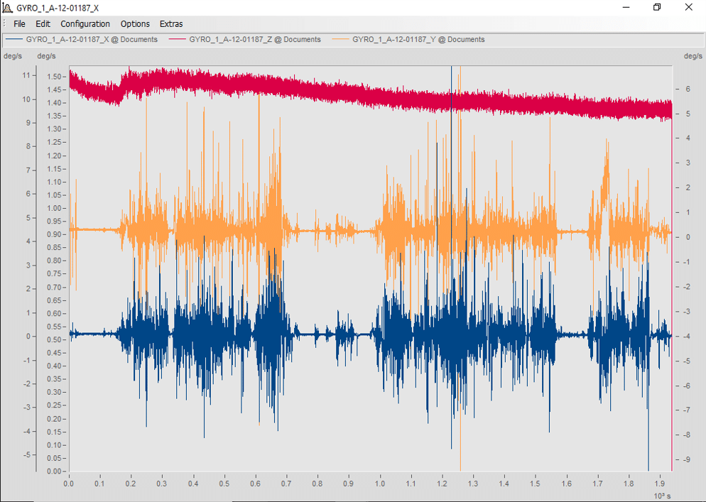Met gyroscopen meten we de hoeksnelheid en rotatiebewegingen van het voertuig. Dit geeft ons informatie over onder andere de stijfheid van de voertuig structuur.
